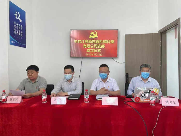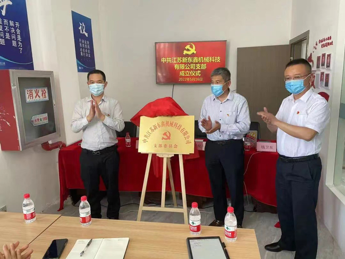 經(jīng)中共江蘇省張家港高新技術產(chǎn)業(yè)開發(fā)區(qū)工作委員會同意,新建中共江蘇新東鑫機械科技有限公司支部委員會,隸屬韓山村黨委管理,由錢衛(wèi)東同志任黨支部書記。5月16日下午,在新東鑫公司舉行了黨支部成立揭牌儀式,高新區(qū)黨群工作部部長張左平同志參加了此次活動。